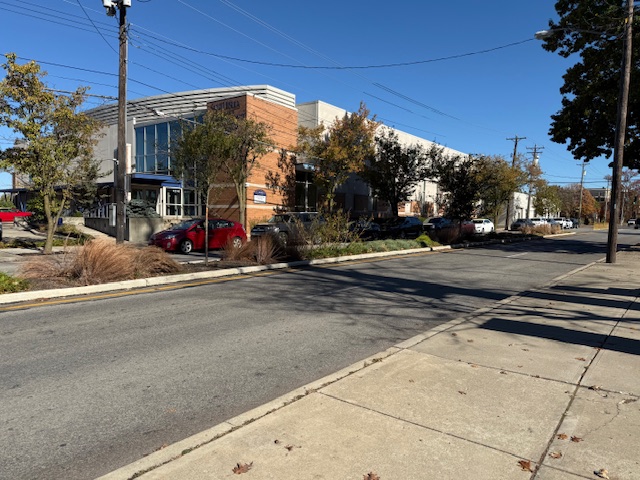 East McMillan and Woodburn in front of Palette Studios (2025: adopted):